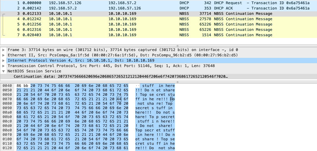 While it was nice to receive a few packets of the sensitive file, but how about the rest of the file? We would need to preform a TCP MiTM style attack and spoof proper TCP ACK packets. To demonstrate this we built a basic Scapy script: