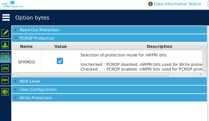 - Level 2: All Level 1 protections, plus no SWD/JTAG connection possible. In this level it is not possible to jump into the system bootloader, no reverting possibility, and option bytes can no longer be changed.