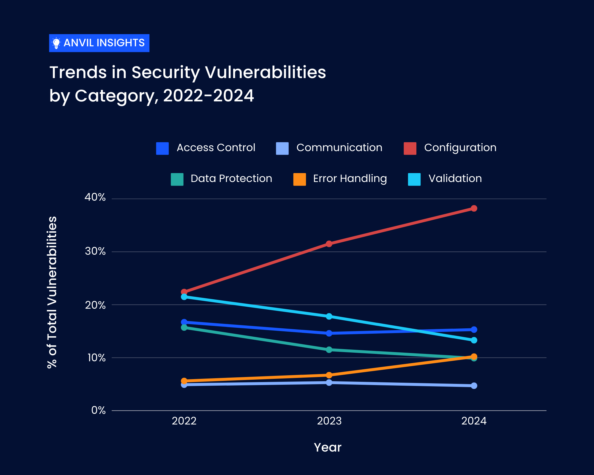 This post explores insights and trends gathered from data that Anvil Secure collected while delivering projects to a wide range of clients.