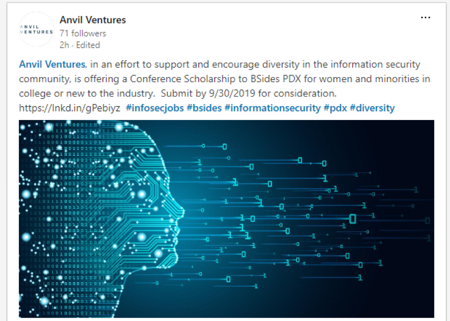 When I think about areas where we have spent a fair amount of time internally talking about how to make an impact that is at a level commensurate with our ability, the initial steps of our diversity program are an excellent example. While it has taken a bit to get firmed up, we are excited about the recent announcement of our first Conference Scholarship and the path we are on for our programs to support these initiatives.